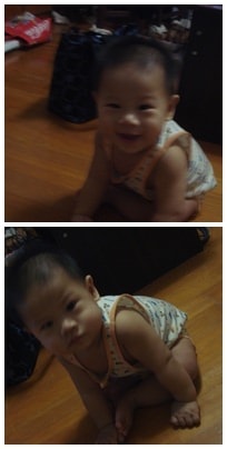 跟你說:來來媽媽這邊。你總是開心的給我一個害羞的笑容,把頭埋起來,卻一動也不動,囧。