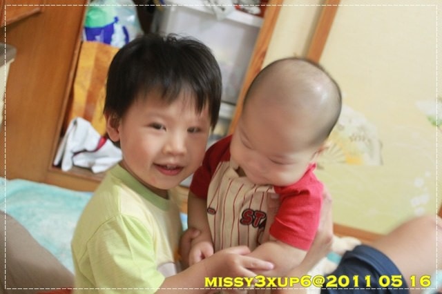 桓兒現在很愛戴帽子呢!經常拿著帽子帶在頭上說:帽子帽子~。
