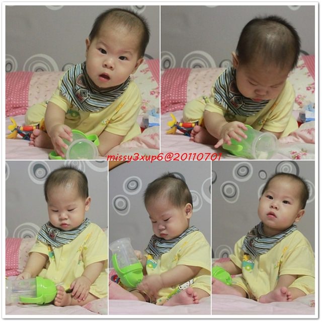 愷愷滿8M囉,他還不會匍匐前進,居然是想要拱起身子爬……。 為娘的我實在不知道該說什麼,他現在是一趴不施力就哭阿阿阿阿。 現在只能看他會不會哪天忽然開竅使力了。 我連桓兒當…