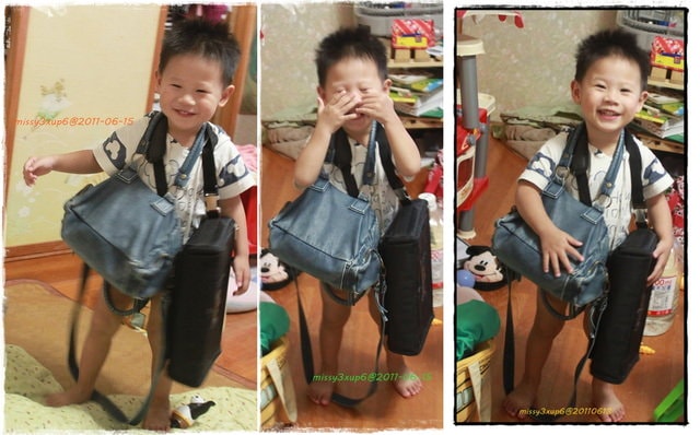 桓兒最近從悶騷派轉成搞笑派了! 時常就是這樣,自己拿著包包背著,開始:拜拜、嗯~嘛! 然後開門要出去XDDDD。 而且現在出門有一套他自己的拜拜模式……。 大約從三月份…