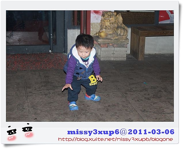離開鍋之舞我們沒有馬上回家,因為大家都說太撐了,怕吃不下蛋糕。 偏偏有偏執狂的我,特地訂了蛋糕,怎麼可以不吃! 所以我們先在門口玩了一下…… 陳小如就這樣跟著桓兒席地而坐…