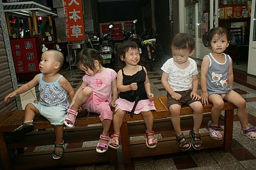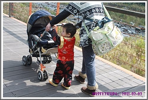 內灣人真是超多的。 但是由於我的背肌力很弱,愷愷的重量慢慢讓我就算用很省力的背巾也背不久,所以還是帶著推車出門了。 三八桓兒不改愛護弟弟的心情,一路上也要幫忙推愷愷。 穿著中國裝,在…